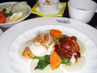 サーモンにはお魚にピッタリのホワイトソース、鴨にはデミソースと一皿でお肉もお魚も楽しめますよ。