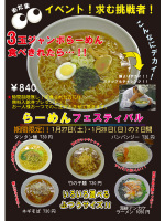 目玉イベントは、3玉の麺が入った『3玉ジャンボらーめん食べきったら!!』