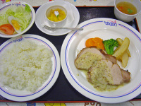 その他にライス、スープ、サラダ、デザートには、甘酸っぱさが後を引く、オレンジの甘露煮がセットになっております。
