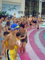 今日の午前11時からと午後2時からの2回プール室内で、サッカーシュートに挑戦!!が行われました。シュートが決まったら景品がもらえる。がっ!!しかし、景品は、早い者順の30名様のみ。