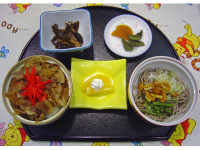 今日のお勧めランチ1品目は、豚丼の匂いがたまらない!豚丼なめこそばセット(730円)です。