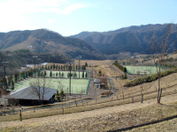 こちらは3月17日(土)にオープン予定のテニスコート全景。ザ・ブーンの駐車場から撮ったものです。なかなか良いロケーションですよね!そういえば去年は写真にも写っているあずまやの雪下ろしをしました!
