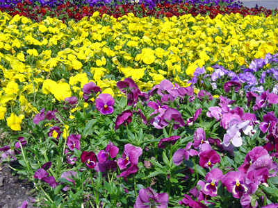 太平山リゾート公園内にある花壇では、パンジーが見頃です。(他の種類の花もあります。)