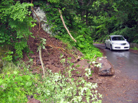 その店を過ぎ右折すると金山滝の方向に行きますが、今日入った情報によるとその道で落石があったそうです。登山や観光をする方は、十分に気をつけて下さい。
