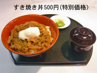 クアドーム ザ・ブーン入館者300万人突破記念につき、皆様に感謝の気持ちを込めましてすき焼き丼を特別価格500円で販売しております。
