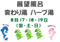 8月17・18・19日(金・土・日)は、クアドーム ザ・ブーンの展望風呂 男女岩風呂は変わり湯 『ハーブ湯』を実施いたします。ハーブの香りで気分リフレッシュして頂ければと思います。