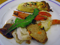 料理の内容は、ポテトキッシュ・ミートローフ・海老のラングレーズ・鶏のファルスとなっております。