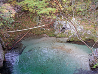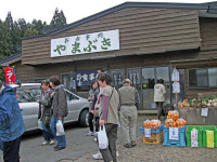 10/30(日)「第2回まるごとJANGO体験ツアー」に行ってきました。コースは、河辺の山上果樹園散策→河辺の岨谷峡、伏伸の滝、殿渕の散策→昼食河辺・お食事処やまぶき→雄和でダリア染め体験→雄和種沢でダリア摘み取り体験→雄和椿台で大根の収穫体験です。最初に山上果樹園に行って来ました。豪雪の年に木が倒れましたが、支柱で木を支えています。